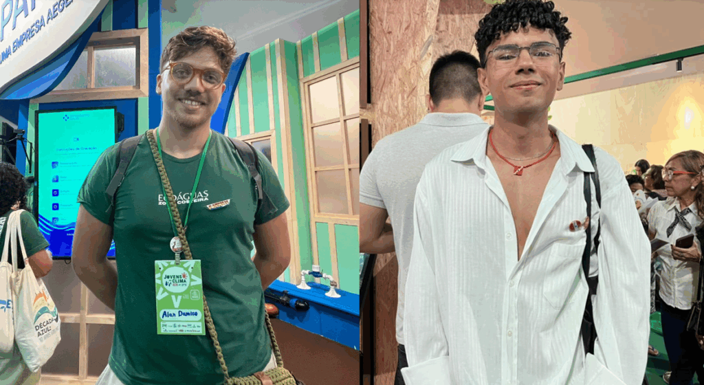 Moradores de Belém também reforçaram a importância do tema. Rubens Antero (foto abaixo, à direita), estudante de Terapia Ocupacional e morador do bairro da Pedreira, reforçou que a falta de saneamento se traduz em riscos de saúde pública. “Trazer esse debate para dentro da COP 30 é muito importante”, pontuou.